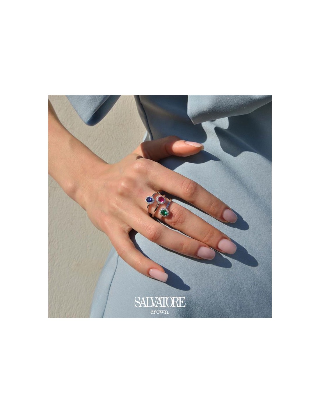 Sortija Plata Rodio Circonita Azul Zafiro Ovalada Alreadedor Blancas Brillantes