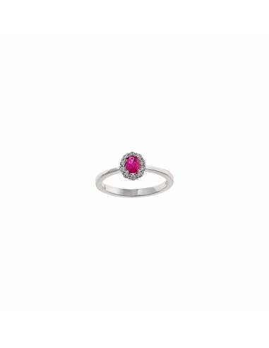 Sortija Plata Rodio Circonita Rubi Ovalada Alreadedor Blancas Brillantes
