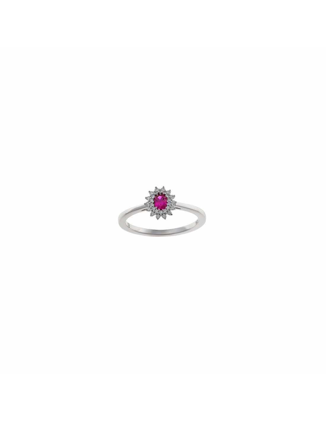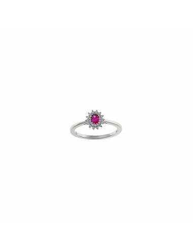 Sortija Plata Rodio Circonita Rubi Ovalada Alreadedor Blancas Brillantes
