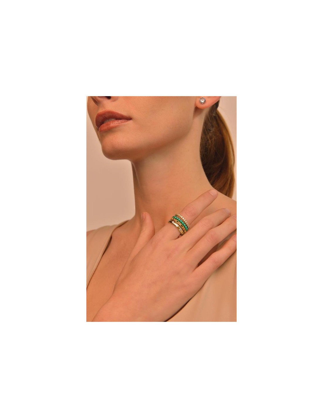 Sortija Plata Chapado Dorado y Verde Circonitas Blanca Nano Verde y Rubi Brillantes