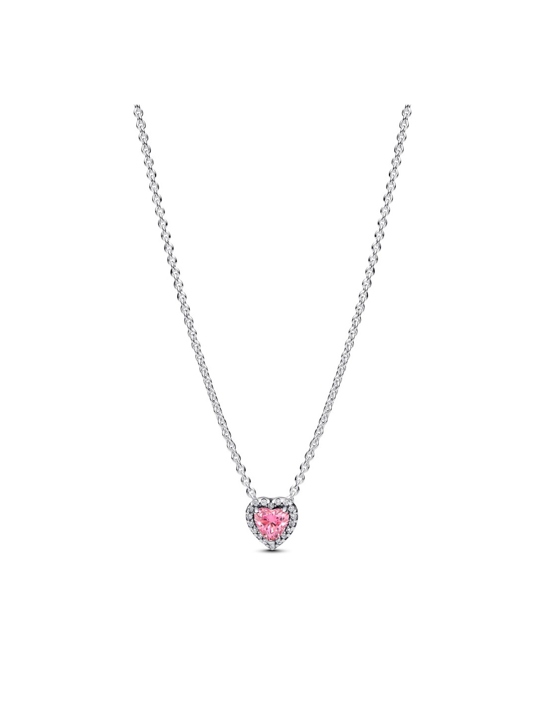 Heart Sterling Silver Collier With Fancy Pink And Clear Cubic Zirconia