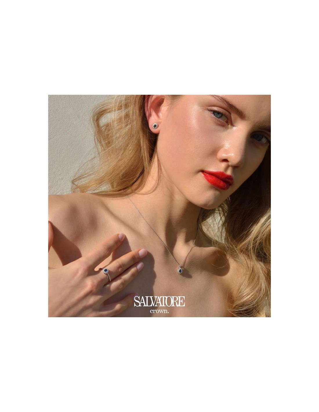 Collar Plata Rodio Circonita Zafiro Azul Ovalado Alrededor Circonitas Blancas Brillantes