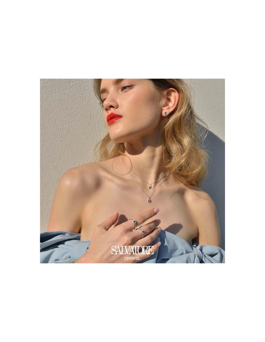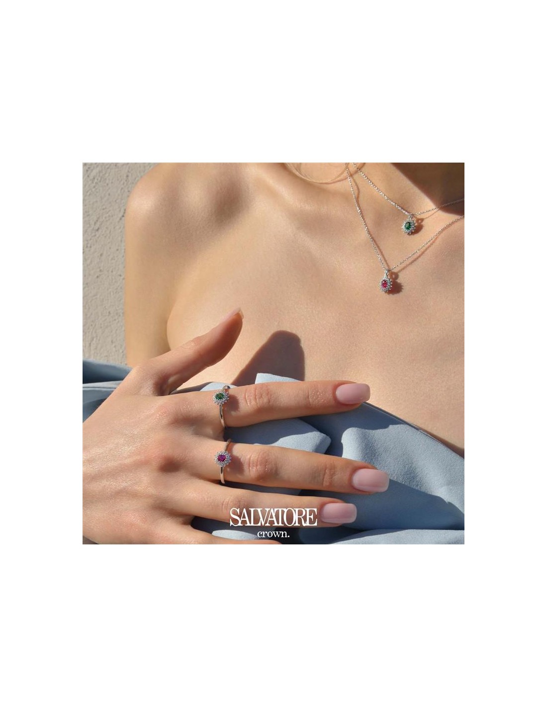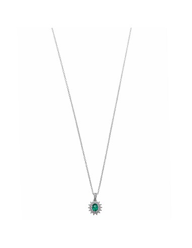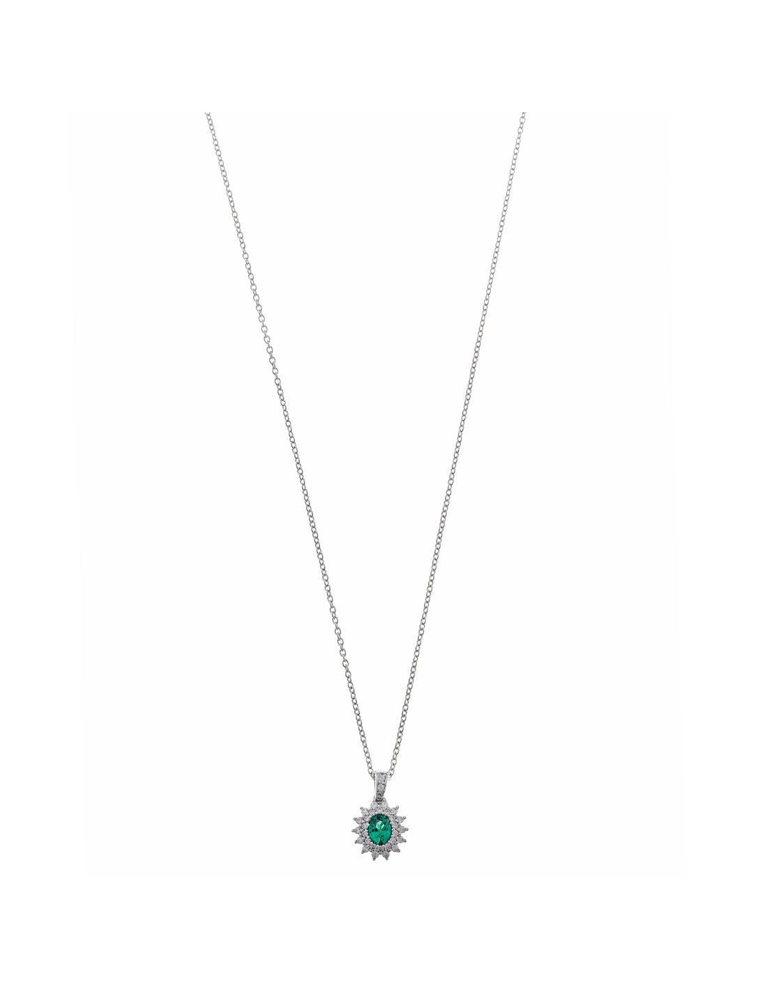 Collar Plata Rodio Circonita Verde Esmeralda Ovalado Alrededor Circonitas Blancas Brillantes