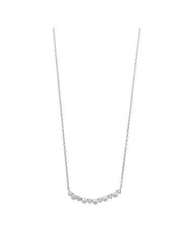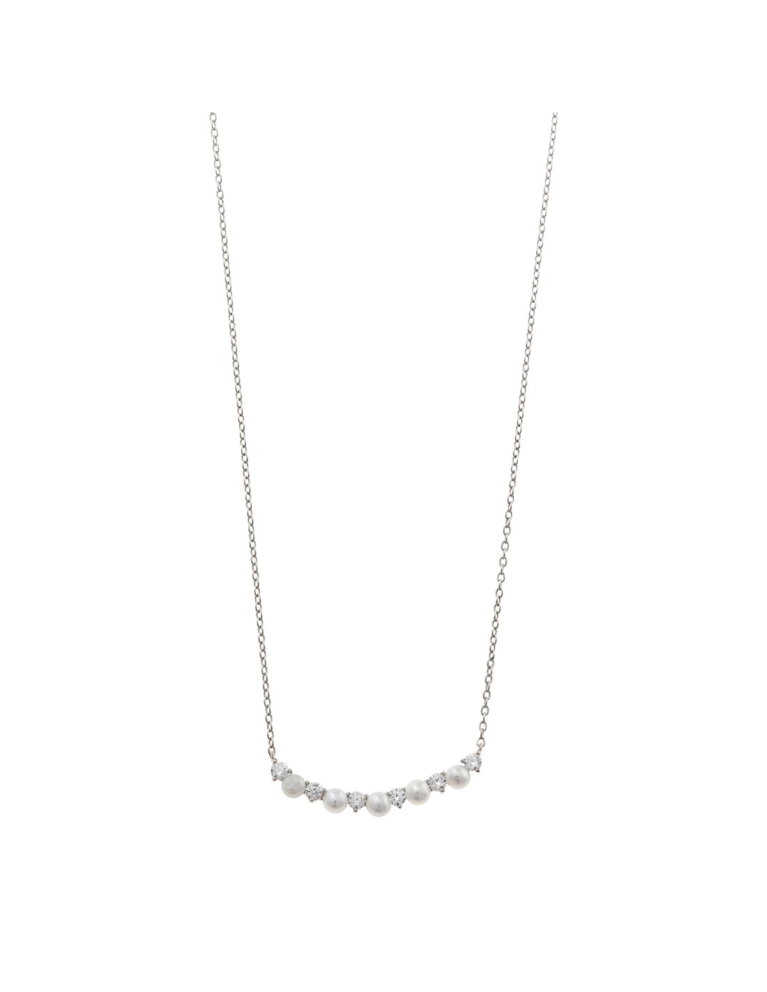 Collar Plata Rodio Perlas Redondas Circonitas Blancas Brillantes