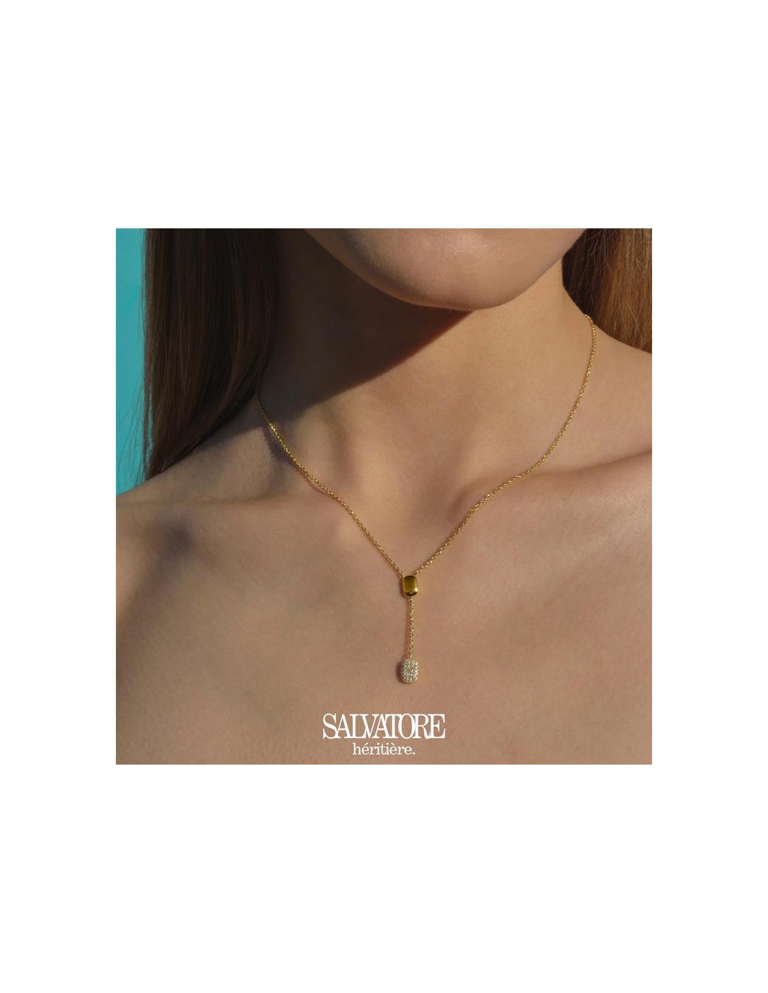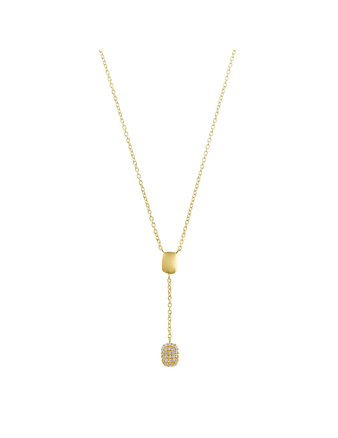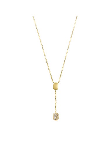 Collar Plata Chapado Dorado Rectangulo Micro Pave Circonitas Blancas Rectangulo Liso
