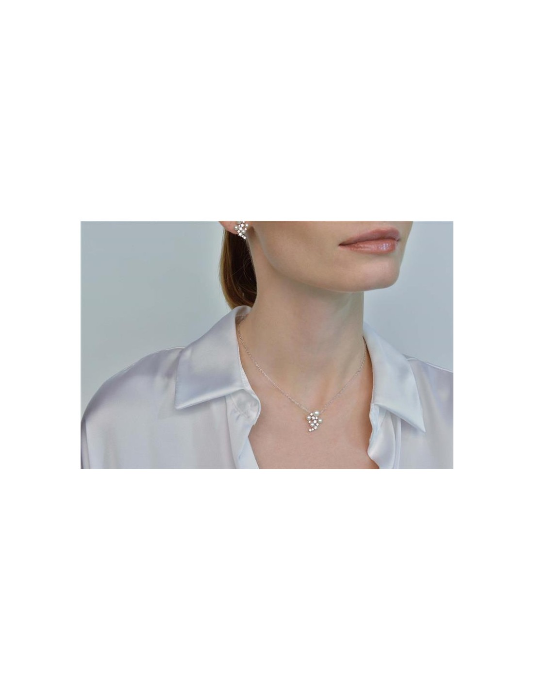 Collar Plata Rodio Circonitas Blancas Brillantes Perlas Boton Agua Dulce