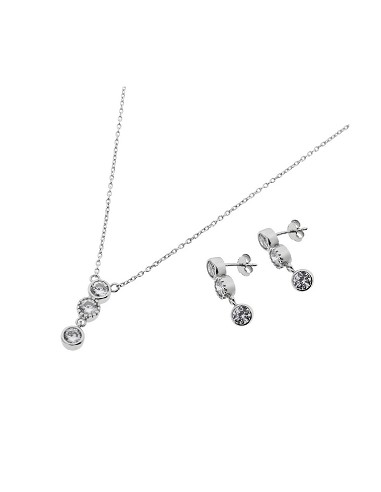 Juego Gargantilla y Pendientes de Plata Rodiada Circonitas con Cierre Presión