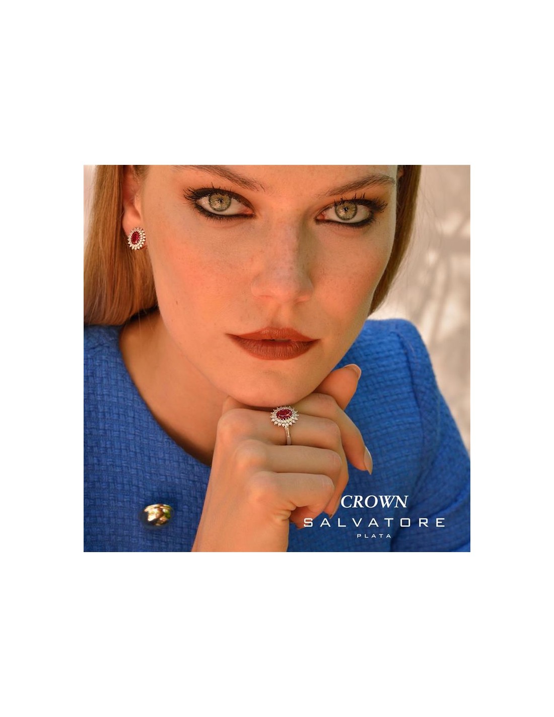 Pendientes Plata Rodio Ovalo Circonita Rubi Alrededor