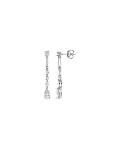 Pendientes Plata Rodio Tira Circonitas Blancas Brillante