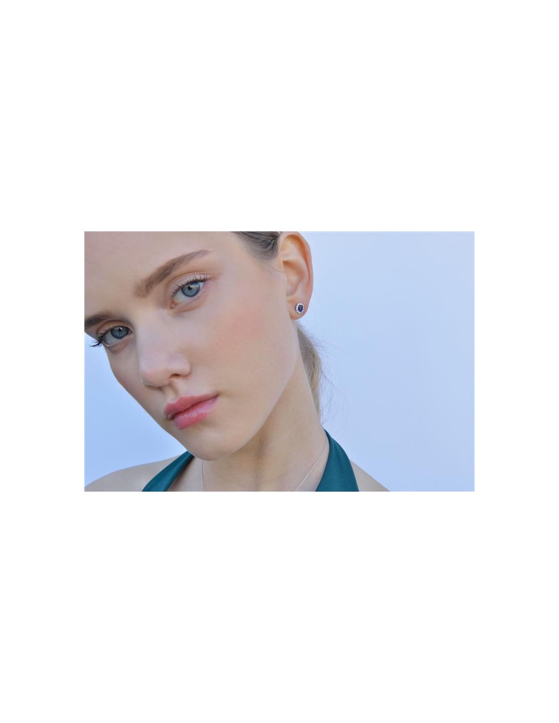 Pendientes Plata Rodio Circonita Azul Zafiro Ovalada Alreadedor Blancas Brillantes