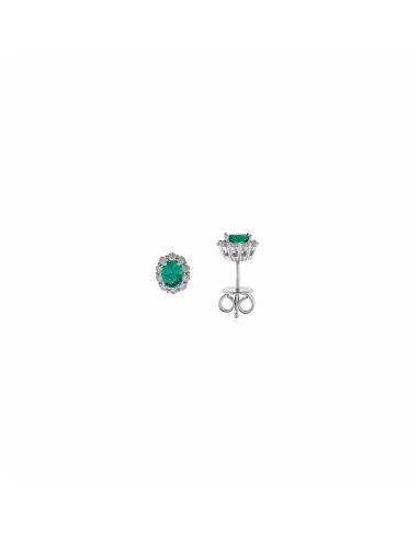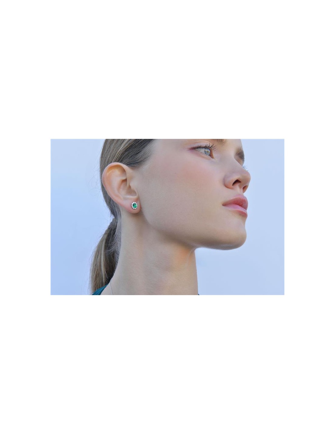 Pendientes Plata Rodio Circonita Esmeralda Ovalada Alreadedor Blancas Brillantes