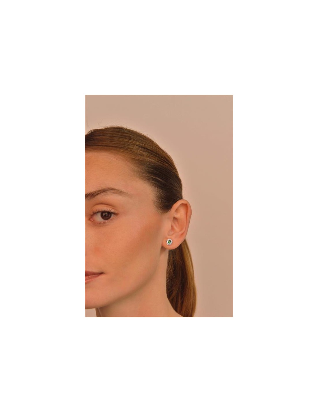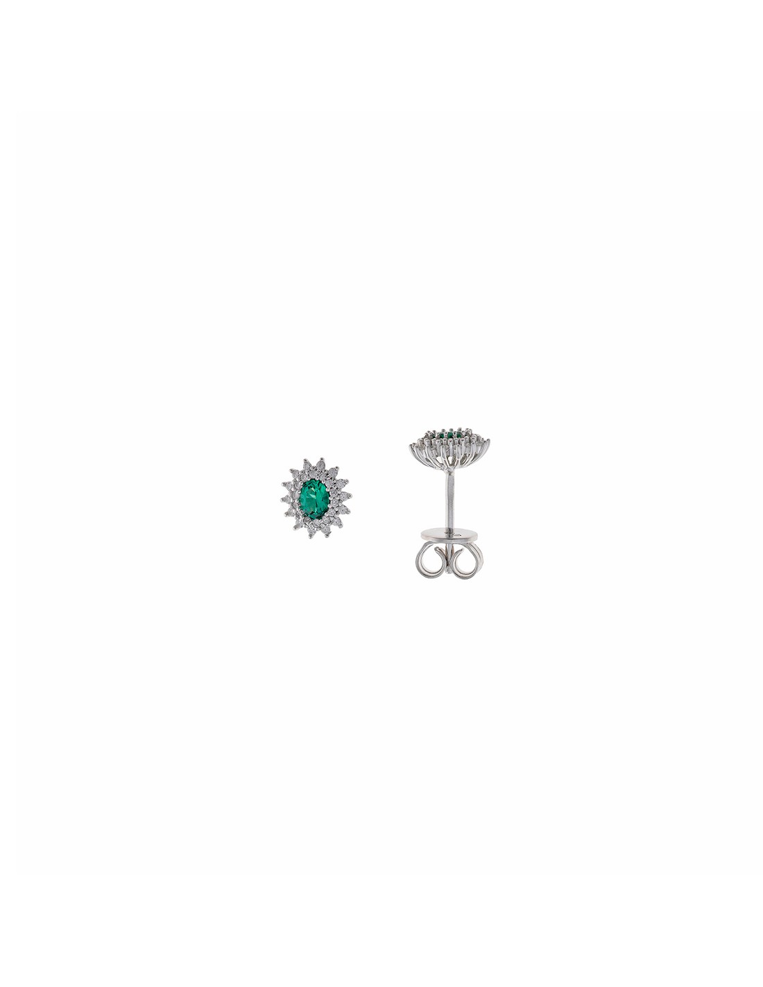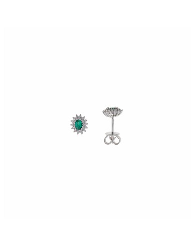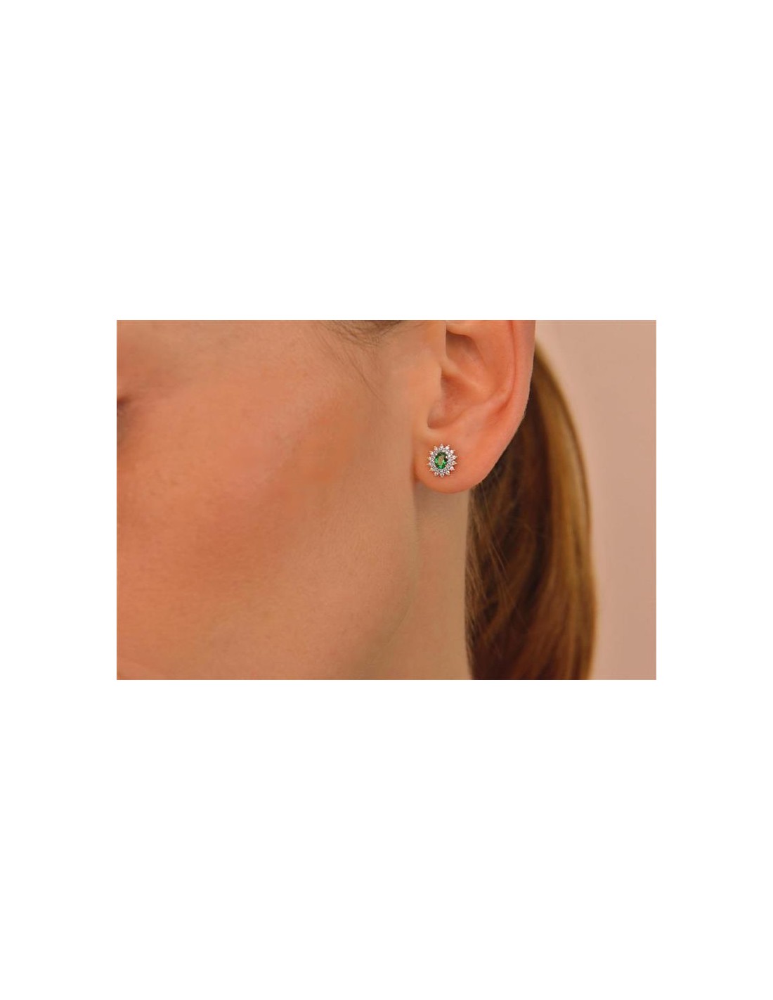Pendientes Plata Rodio Circonita Esmeralda Ovalada Alreadedor Blancas Brillantes