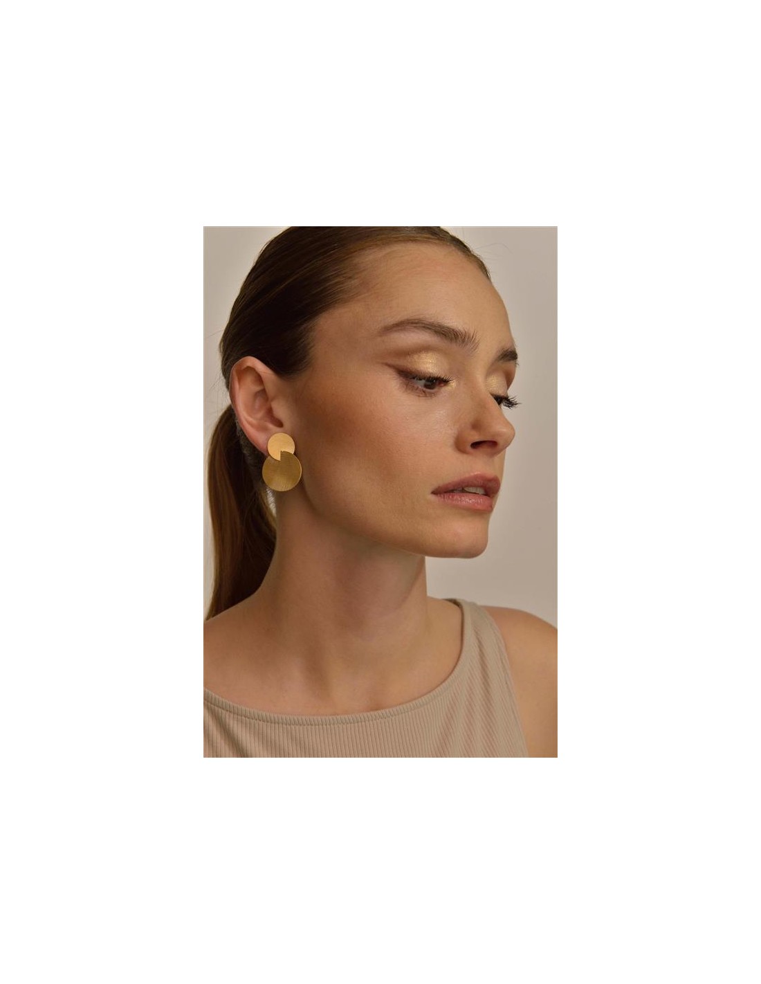 Pendientes Plata Chapado Dorado Dos Circulos Diamantados