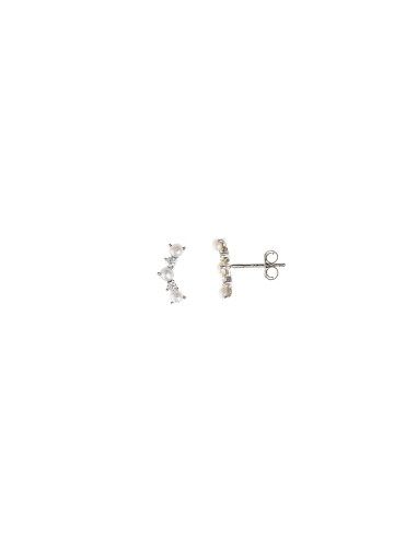 Pendientes Plata Rodio Tres Perlas Dos Circonitas Blancas Brillantes