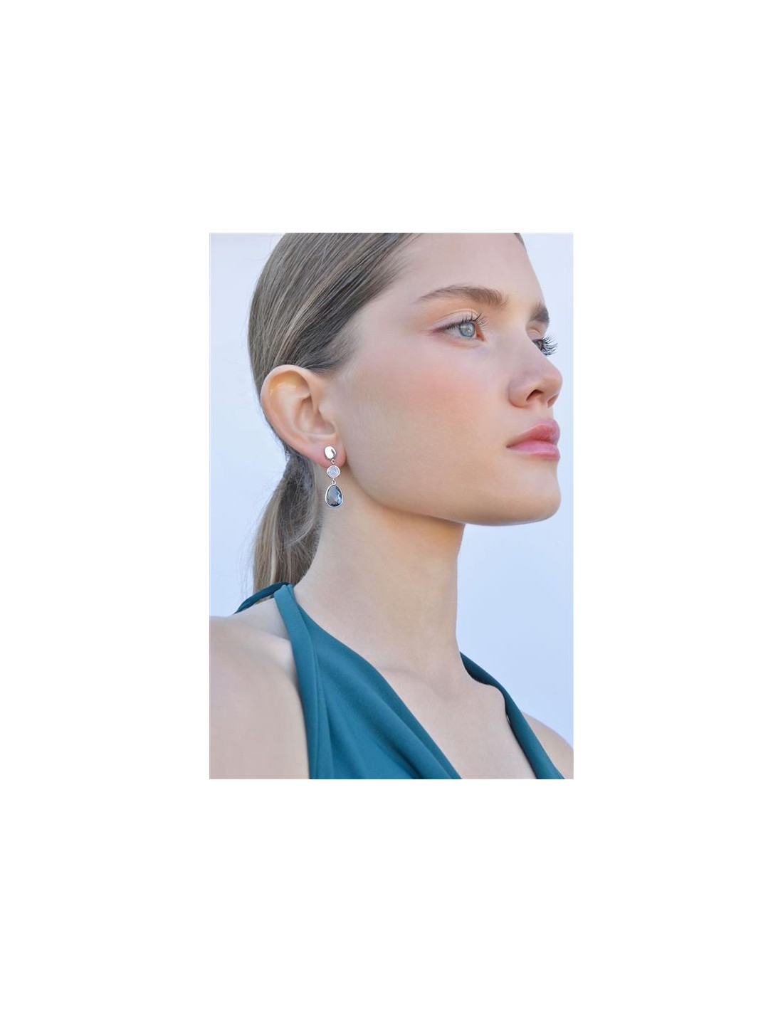 Pendientes Plata Rodio Ovalo Onda Ciruclo Cuarzo Rosa Cristal Pera Turmalina Azul Facetadas
