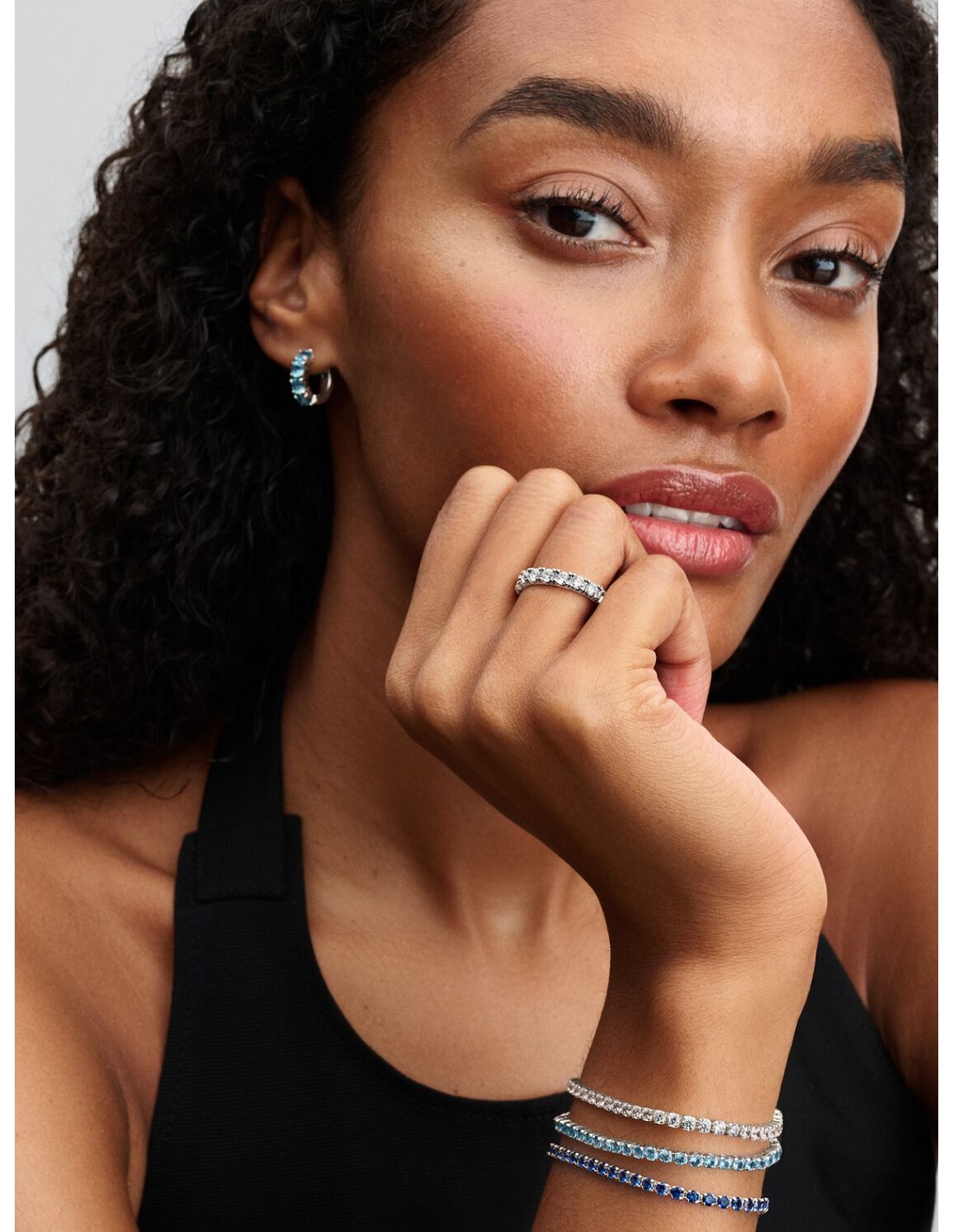 Da un toque de color a tu look con estos bonitos y delicados pendientes adornados con una fila de cristales de color azul aguamarina.