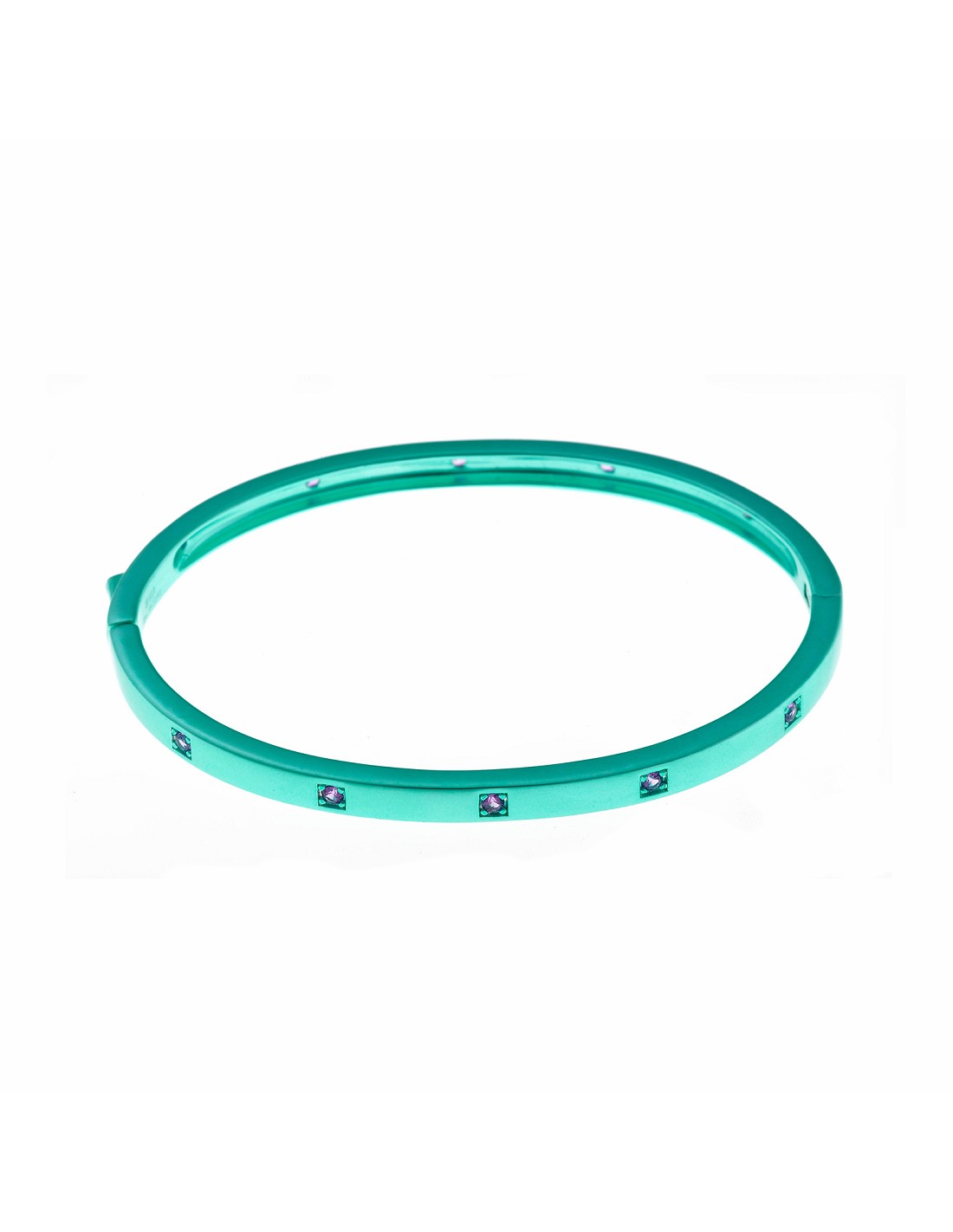 Pulsera Caña Plata Chapado Verde Circonitas Nano Rubi Baguet