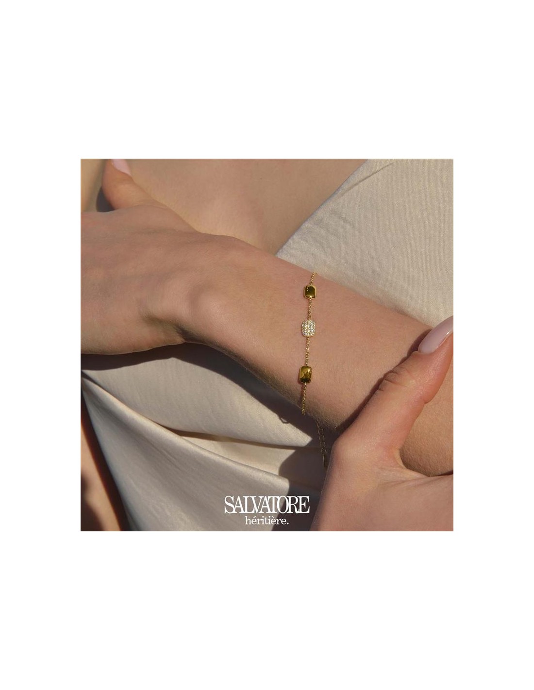 Pulsera Plata Chapado Dorado Rectangulo Micro Pave Circonitas Blancas Dos Rectangulo Liso