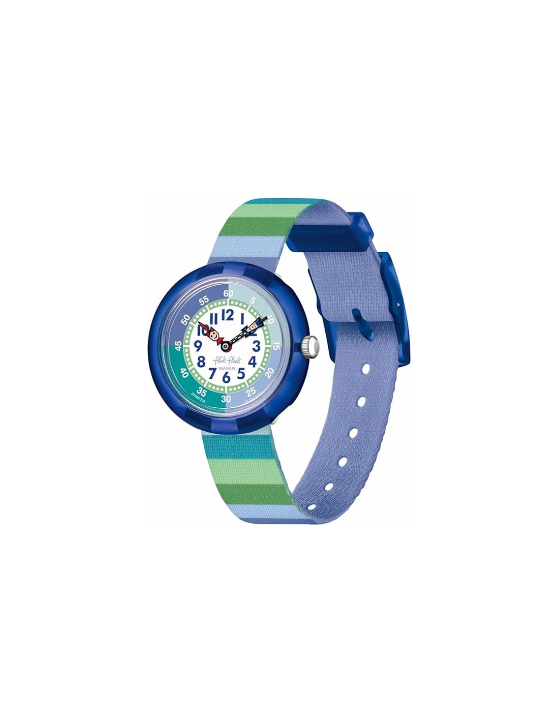 El reloj educativo para niños STRIPY GREEN tiene un diseño liso en verde. Un regalo ideal para niños con cuartos de color en la esfera para que aprendan a decir la hora fácilmente.