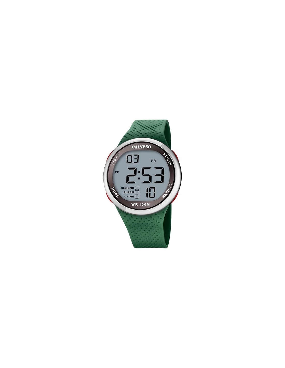 CALYPSO Reloj modelo K5785/5 de la colección COLOR SPLASH, caja de 44 mm negro con correa de caucho verde para caballero
